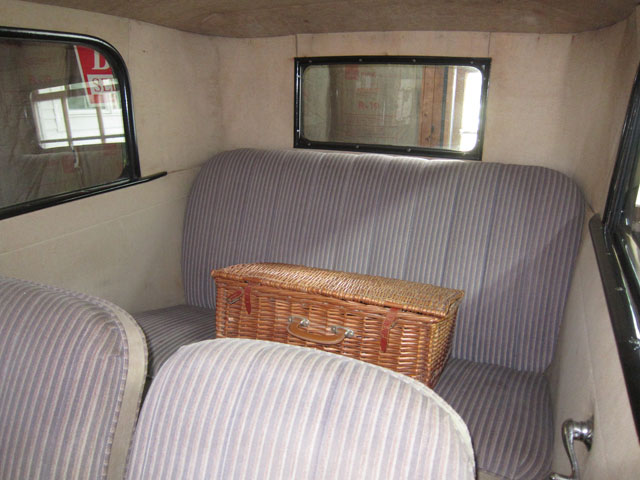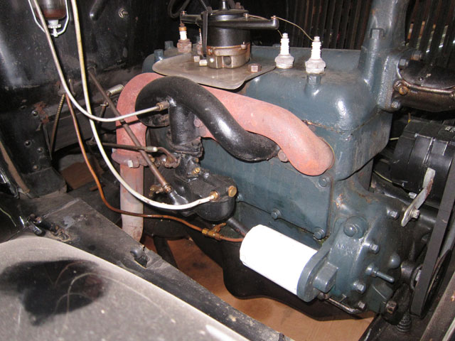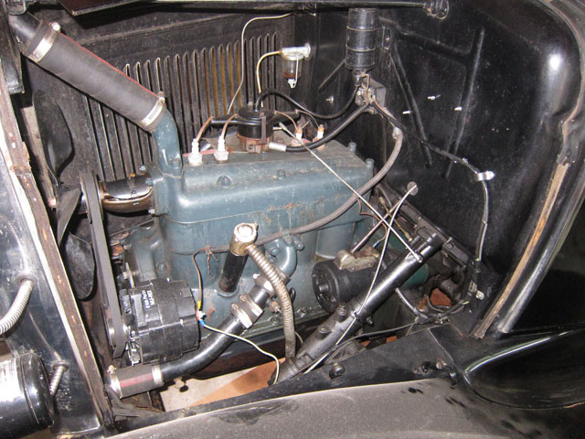 Rebuilt engine with special oil filter accessory. Other upgrades not noticeable like improved headlights (I had those put in). I know Model As and the weak body spots — this car is solid, very sold, and no metal faults. Nice upholstery, but not the original pattern, but totally serviceable. In the early pictures when I bought her you see the big trunk on the rear the previous owner had for touring. I did not like it, removed it, and sold it. Get her going, and go touring.