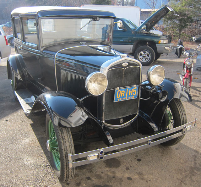 I have had Model As all my life. I went everywhere in New England in my 1929 Roadster in the 1960s. Sadly after 20 years sold that baby, but I have stabled another 6 “As” over the years. In January, 2010, I bought and restored a 1958 Triumph TR3A – something I wanted since new – and as a result sold my 1931 Model A Roadster I had at that time. Two years later a 1960 MGA came along, and both of those cars cover a great deal of ground with me now in New England. But I missed having a Model A, and wanted to “die with one.” On December 4, 2013, I bought this 1931 Tudor Sedan in Connecticut. From an estate, it had been off the road about 20 years. The owner’s Dad had it in Pennsylvania and had it fine tuned for long-distance touring. It was just what I wanted, and bought it instantly. The next day it was trucked up to the Granite State before a snowstorm, and tucked into a barn as seen below.