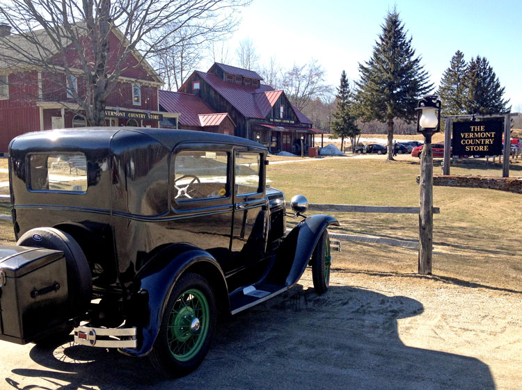 But the last two years I have only driven her 4 miles. That is not fair to “her” or to someone else who could enjoy her and get her out. Sorry, I have too much fun in my sports cars – I need to now let the “A” go so she can be on the road. She starts right up even after months, but the battery is dead at the moment. Any smart person can get her going in minutes. I am not mechanical my Dad always said (you should have seen the old cars he had). I should have said to him, “well teach me then.” So, here Lady RAB sits, ready for her new life. I welcome you to visit to enjoy her. Below is 6 April 2014 when we took a tour to the Vermont Country Store in Rockingham, Vermont. NOTE – the trunk on the rear is no longer there – I sold it.