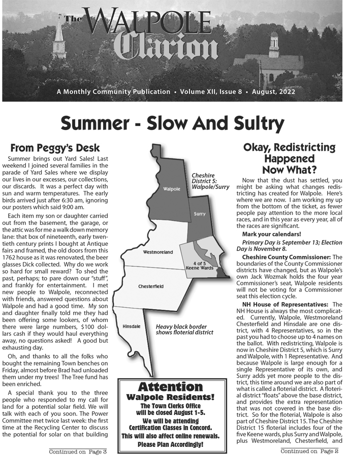 Yes a tad early with the printer’s vacation schedules, but now at the post office for delivery, and available on line – CLICK THIS LINK (or image below) to see this issue. A slow summer so far. Organizational activities still not “back up” as in the past. COVID has certainly redefined our lives to some extent.
