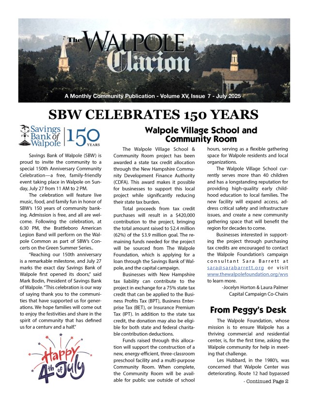And ready to go to the post offices for delivery June 28 or 30. Sadly fewer pages this month. There were few submissions of recent past happenings, and not much seems to be planned for the next month. Remember, if you do have an event to share with the community, submit your article for possible inclusion in the next issue.