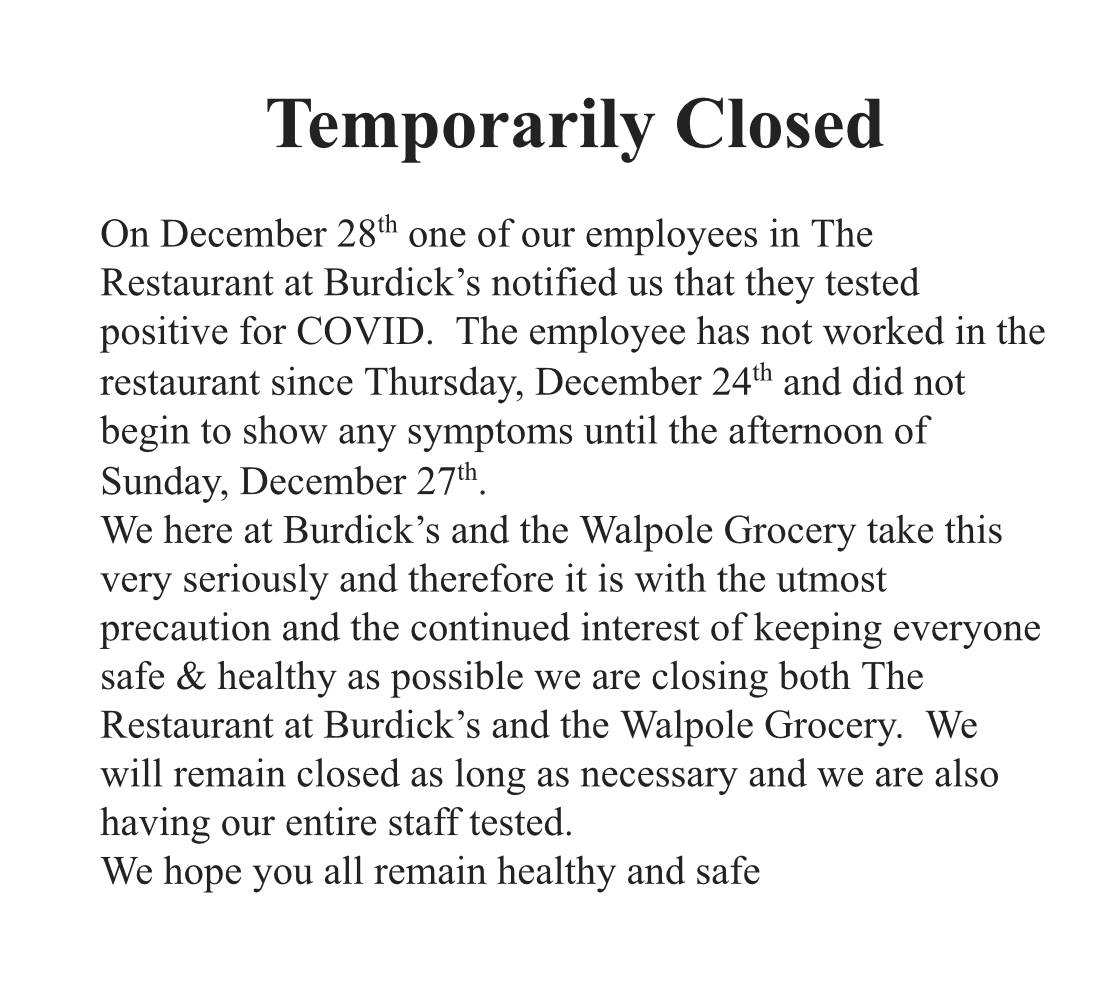 COVID at Burdicks
