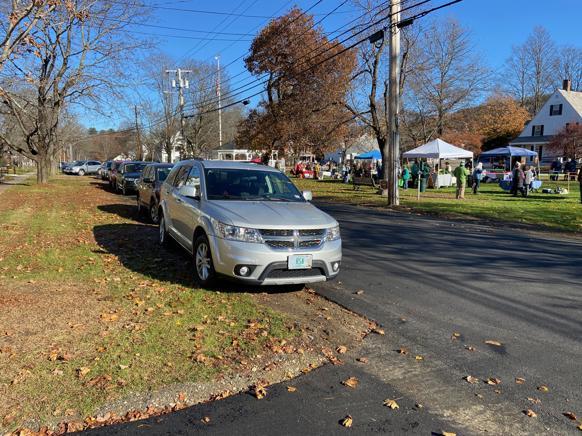 Note some of the “concrete bumpers” are compacted into the ground over many decades. This has not happened to the same degree on Washington Street since there is much less parking. Without these “bumpers,” serving as curbing on Elm Street, vehicles would have compacted the soil, killed grass, and created dangerous mud slicks with possible liability issues for the Town.