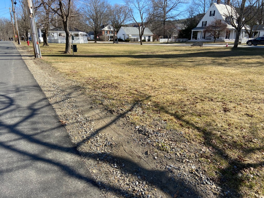 UPDATE – MARCH 30, 2022 — This page, sadly, is of necessity continuing in documenting an ongoing problem caused by Walpole’s Highway Department. The focal point of Walpole – The Town Common – has never in my 20 years of residence looked worse. Instead of maintaining it properly, and always making improvements at all times, the appearance of the Common, particular the west side, has been degraded the past year. And, sadly it appears the Highway crew does not care, and destroys the area here, and elsewhere in the community.