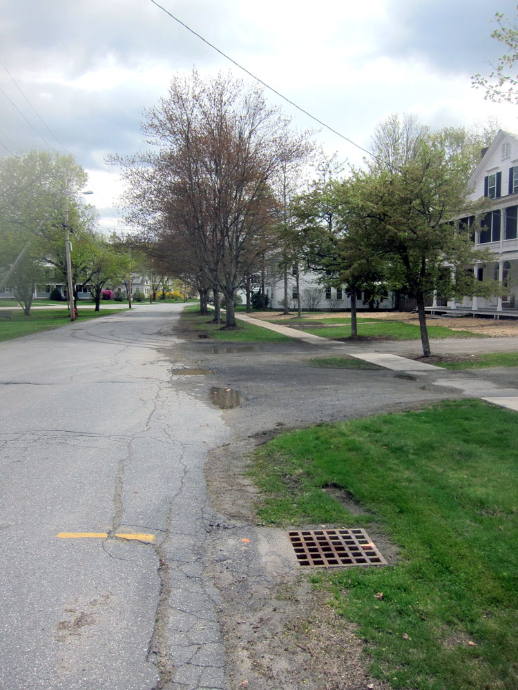 First a clarification of the advantage of curbing. Curbs delineate the edge of the pavement, thus separating the road from the roadside and discouraging drivers from parking or driving on sidewalks and lawns. Curbs provide structural support to the pavement edge. And, curbs can be used to channel runoff water from rain or melted snow and ice into storm drains. These are the utilitarian aspects, but even more important in our village setting, and in consonance with Main Street, Westminster Street, and other village locations: