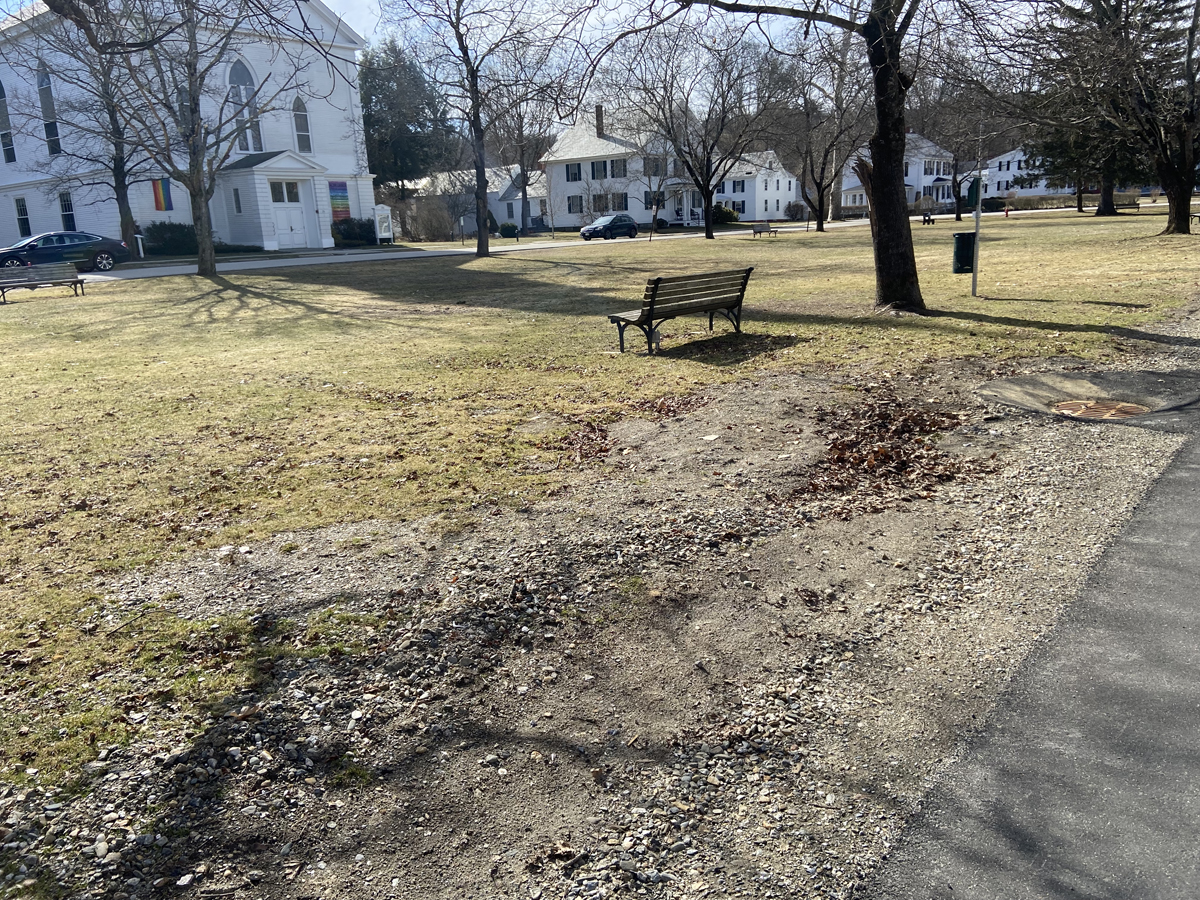 UPDATE – MARCH 30, 2022 — This page, sadly, is of necessity continuing in documenting an ongoing problem caused by Walpole’s Highway Department. The focal point of Walpole – The Town Common – has never in my 20 years of residence looked worse. Instead of maintaining it properly, and always making improvements at all times, the appearance of the Common, particular the west side, has been degraded the past year. And, sadly it appears the Highway crew does not care, and destroys the area here, and elsewhere in the community.