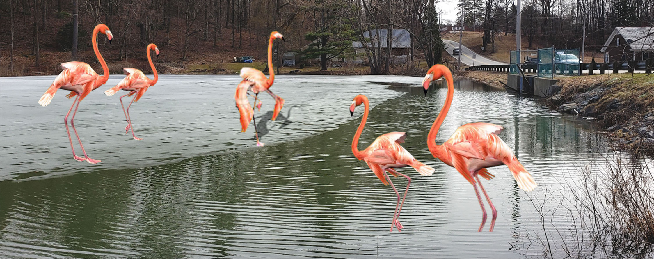 Even with global warming affecting our planet, it was a real shocker to see a flock of flamingos at the Mill Pond in Walpole this past week.