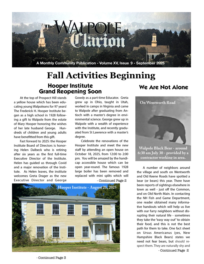 Walpole, New Hampshire's Monthly Community Publication