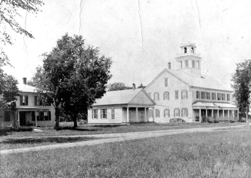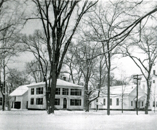 Below looking at the Town House, and church is as it looked about 1845 with a front Greek portico with four fluted Doric pillars. No trees at this time in this area on the common.