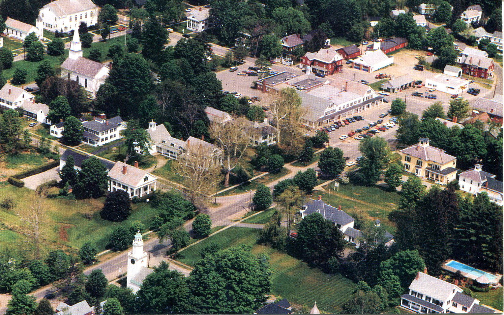 and a 1970s aerial view of the Village Common, Square and shopping “district” – you will enjoy this one full screen – just click