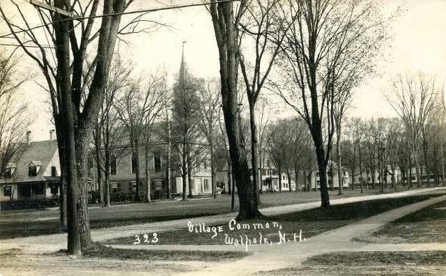 One of the most photographically documented areas in town, by nineteenth-century stereo views, and early 20th-century postcards, is the Walpole Common, followed by Main Street. Looking at these images over 140 years we can see that “only the trees are different.” Residents made sure that as trees grew, matured and were lost, that they were replaced. What a great community project to coordinate tree care and replacement so as the years go by “only the trees are different.”